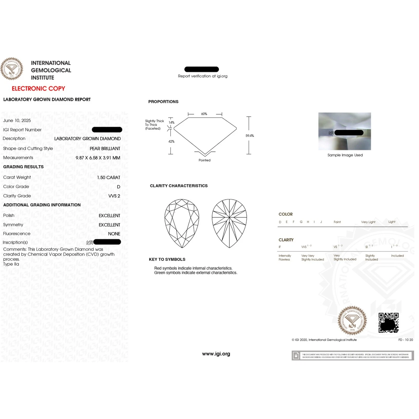 • Main Stone: Lab-Grown Diamond (CVD/HPHT)