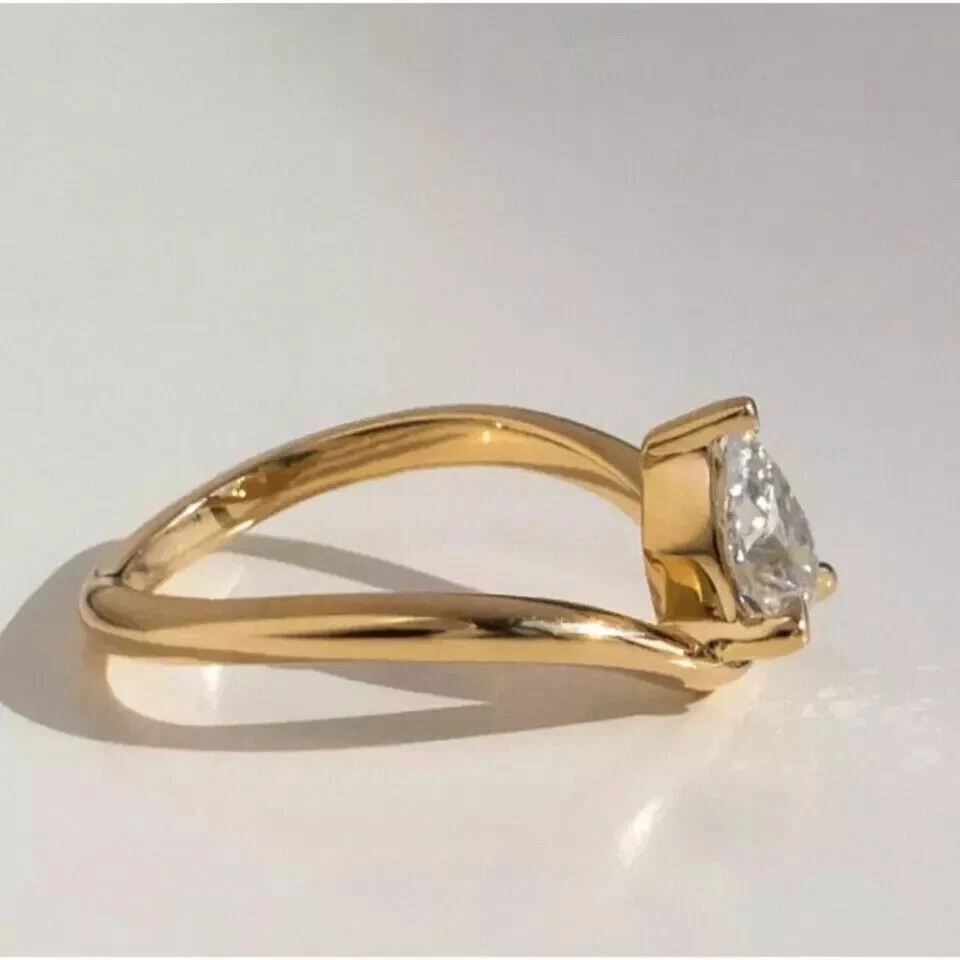 This pear-shaped diamond engagement ring in 14K yellow gold offers timeless elegance with a modern edge. Featuring a 1.50CT D VVS2 lab-grown diamond, it radiates unmatched brilliance and purity. Additionally, its elongated teardrop silhouette enhances finger length, making it a refined choice for luxury buyers in Dubai.