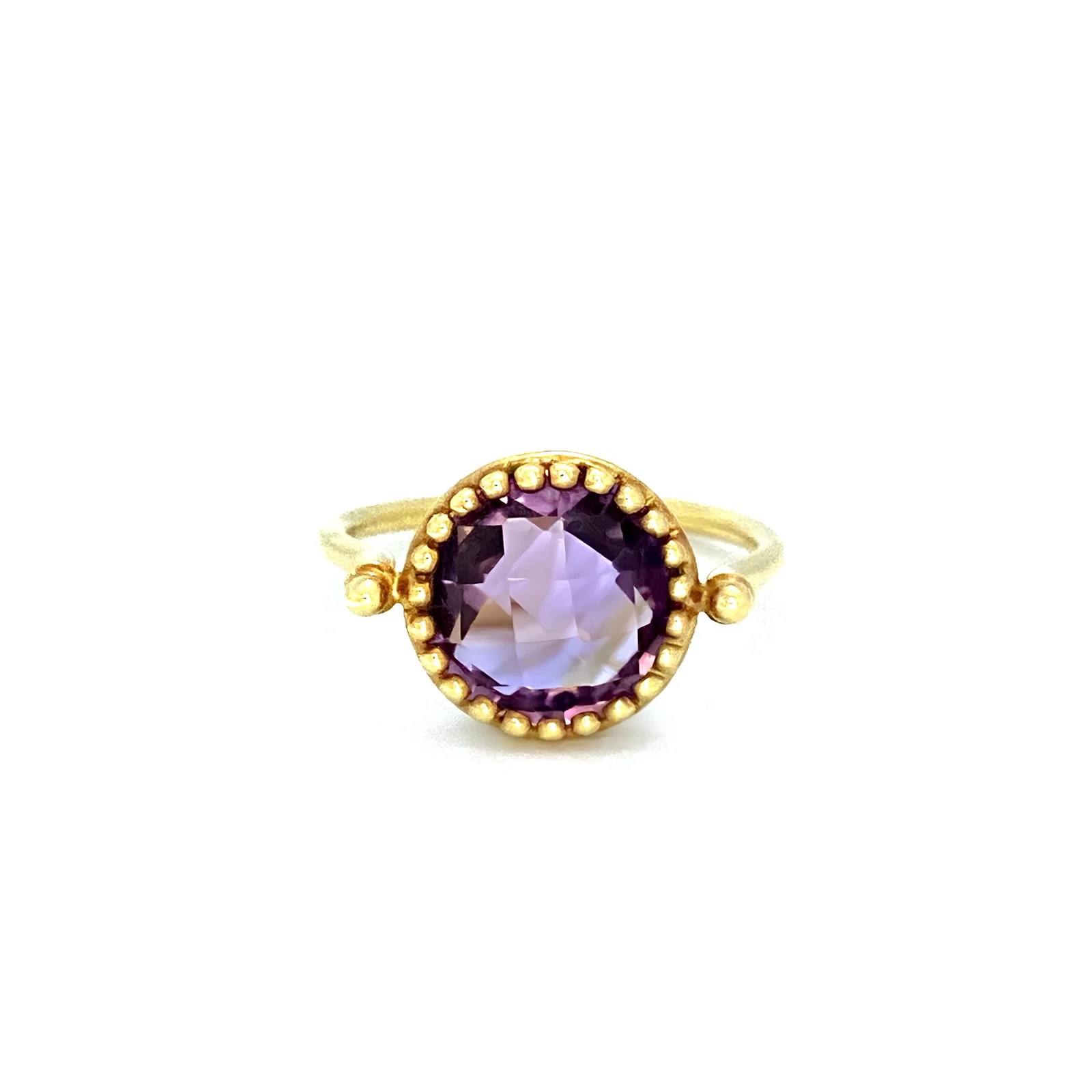 Enhance your European jewelry collection with this stunning Amethyst Ring Europe. Crafted in 18K yellow gold, the ring features a vibrant amethyst gemstone that radiates elegance and sophistication.
