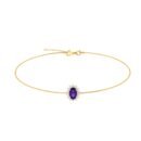 A one-of-a-kind 18K Gold Amethyst and Diamond Bracelet, which was inspired from Princess Diana and Princess Kate Middleton, showcases a genuine and natural Oval-shaped 5X3 Amethyst that is surrounded by brilliant-cut round Diamond.