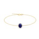 A one-of-a-kind 18K Gold Blue Sapphire and Diamond Bracelet, which was inspired from Princess Diana and Princess Kate Middleton, showcases a genuine and natural Oval-shaped 7×5 Blue Sapphire that is surrounded by brilliant-cut round Diamond.